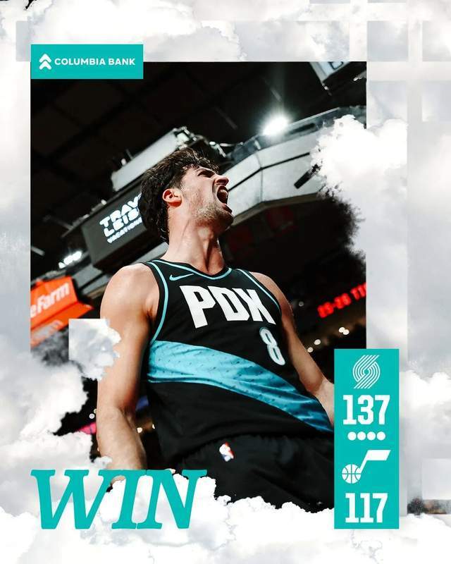 今日常规赛,开拓者主场137-117大胜爵士。