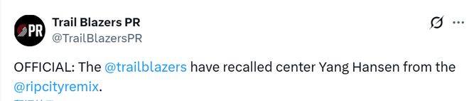 开拓者官宣召回杨瀚森!今日G联赛砍15+9+5明日或出战步行者