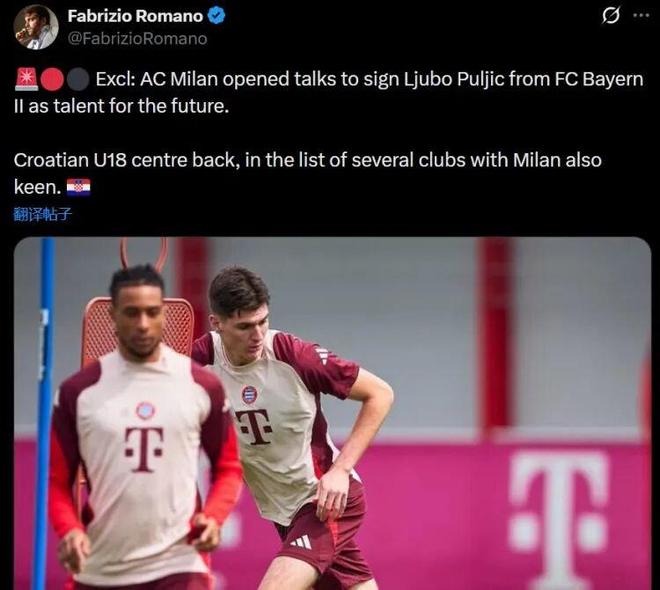 罗马诺丨米兰与拜仁二队开启谈判